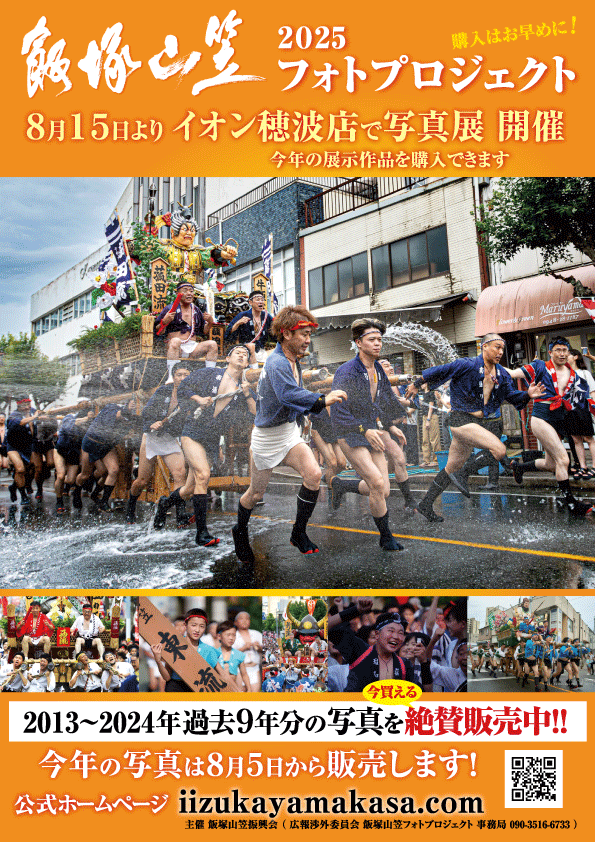 2013年に立ち上げ今年で10年を迎える当プロジェクトは、振興会の記録や広報物等への写真利用はもちろんのこと、舁き手への低価格での写真提供を、立ち上げ当時から今も変わらず行っており、飯塚山笠にはなくてはならない存在になりつつあります。